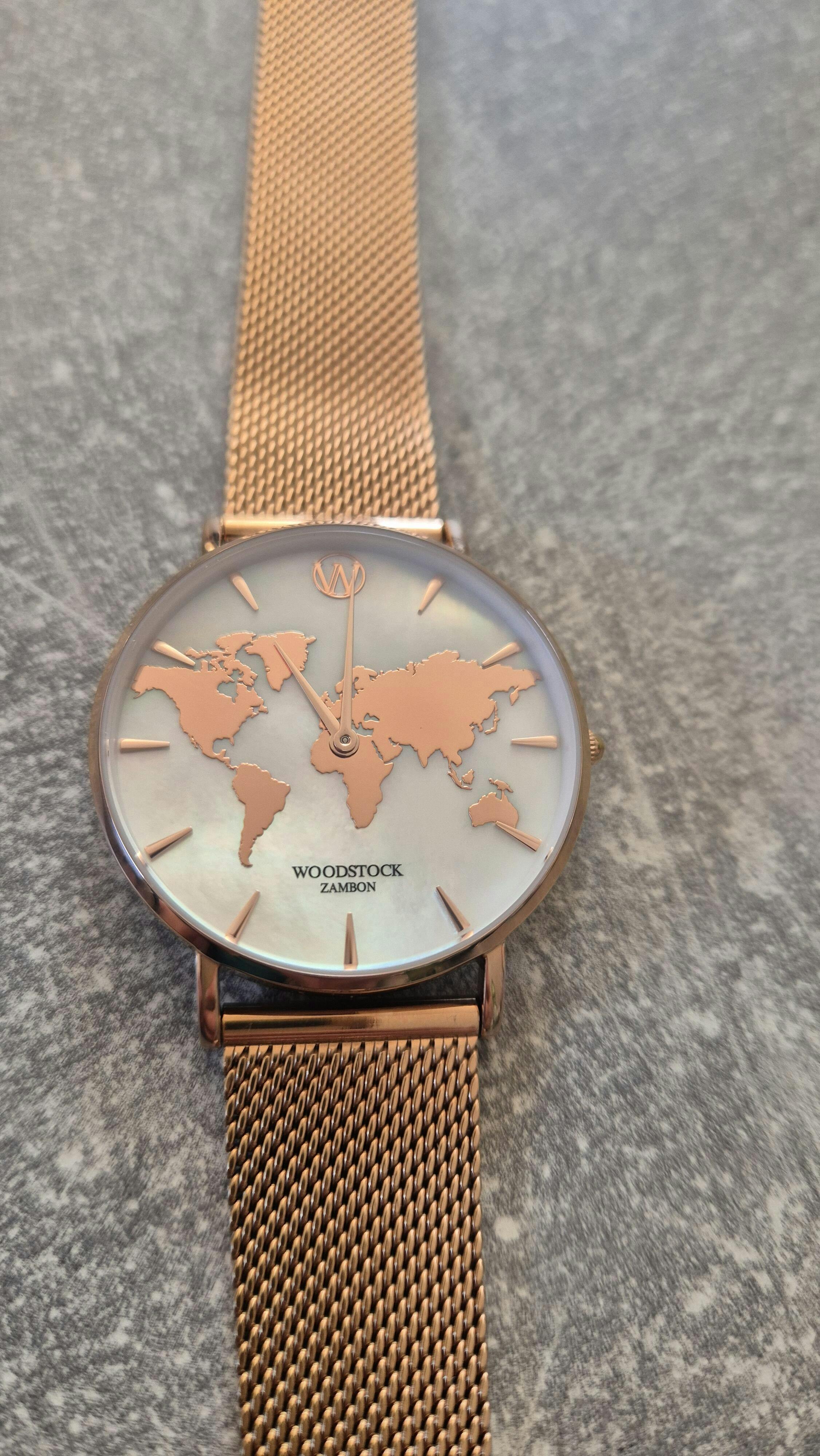 • Mirror-finish map in rose gold — Reflective surface that catches the light • Real mother of pearl base — Iridescent shades from pink to aquamarine • 36 mm case in 316L stainless steel— Plated in 18k rose gold, corrosion-resistant and colour-safe • Adjustable mesh strap — Elegant, lightweight and comfortable • Japanese quartz movement — Seiko VJ20, reliable and precise • Waterproof 5 ATM — Our products never fade, tarnish, or lose their colour — even when exposed to sweat, heat, the sea or pool water. So live your adventure! • Warranty — 24 months